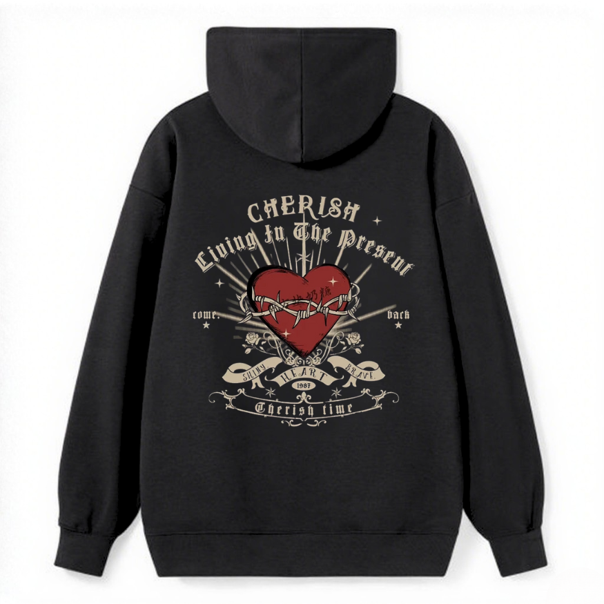 “Cherish” Heart & Rose Tattoo Hoodie